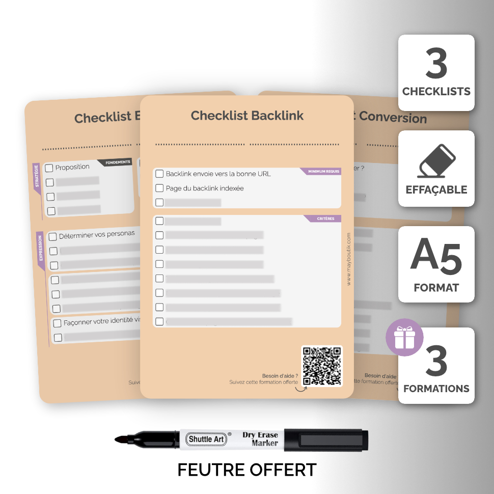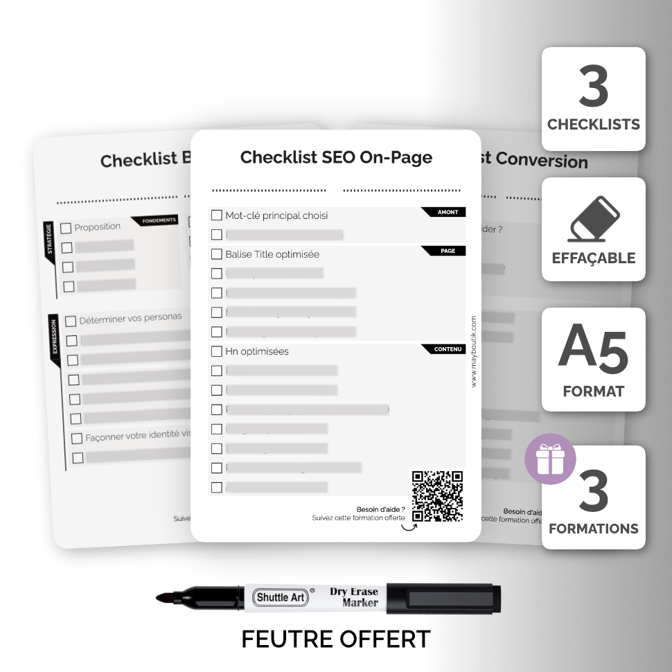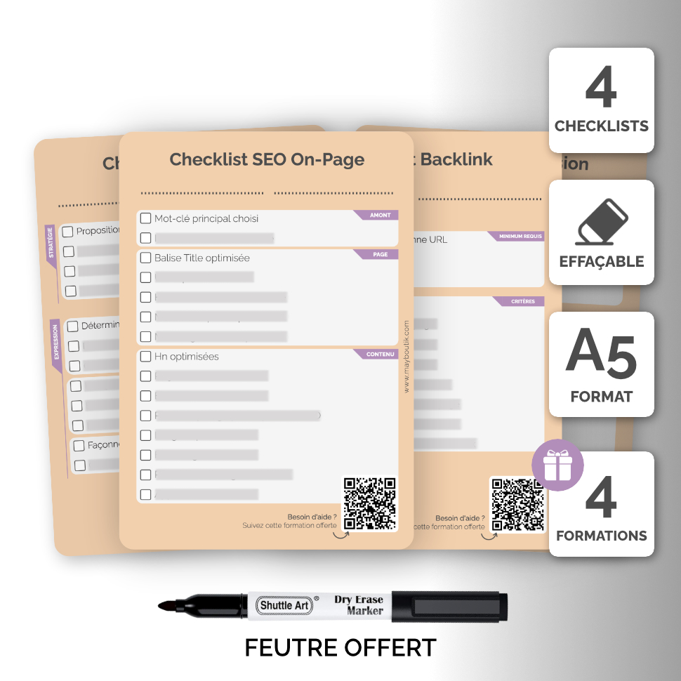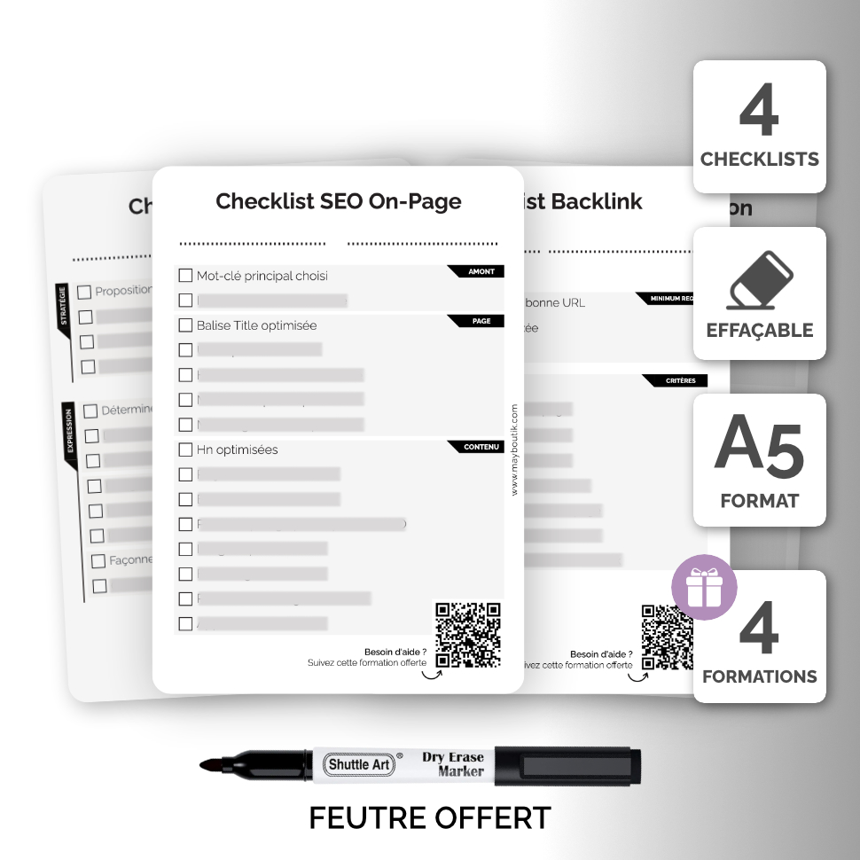 📝 Pratiquez le SEO concrètement et dans le monde réel avec des supports plastifiés que vous allez pouvoir réutiliser un nombre incalculable de fois.